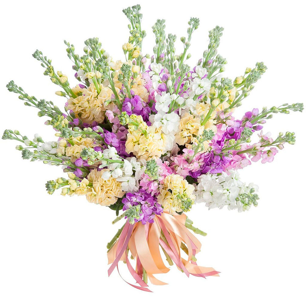 Маттиолла микс (желтая, белая, сиреневая). Упаковка (лента, пленка, крафт, сетка, пленка матовая)
