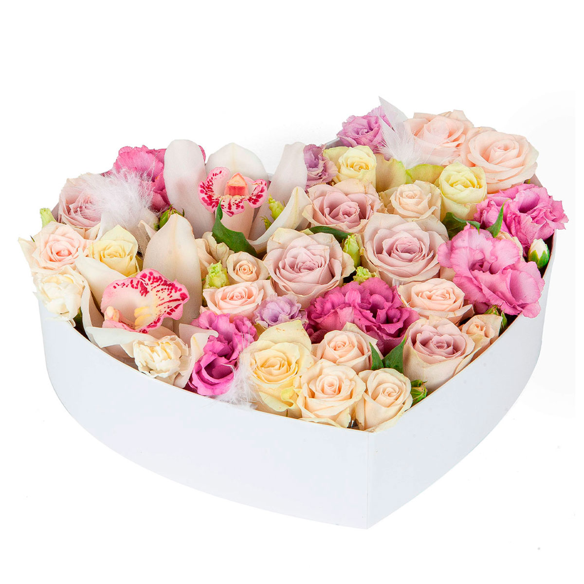 Цветы в коробке «Нежный флер» с доставкой по г Батайск: вы можете купить букет в цветочном супермаркете «Флормания» по цене от 2799 руб.